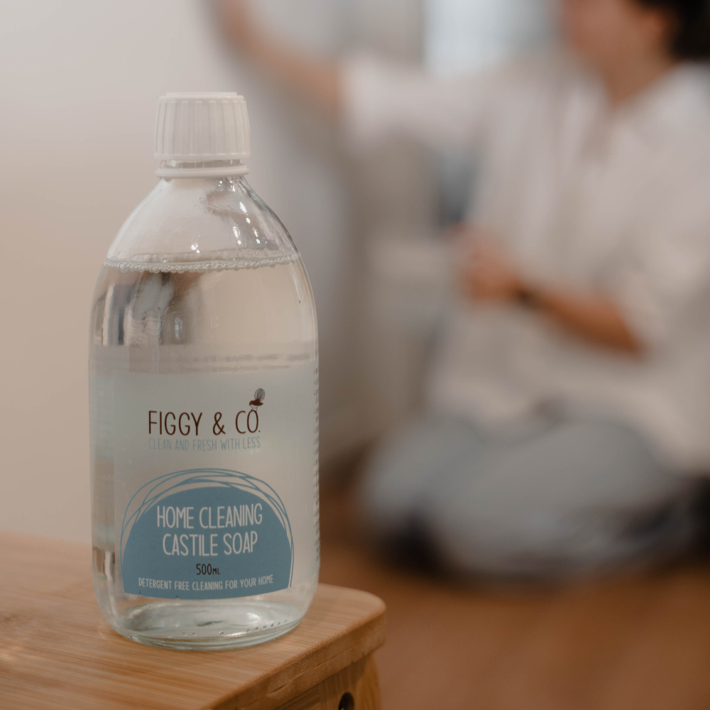 Figgy home cleaning castile soap is a super versatile concentrated general cleaner. Use it neat on a damp cloth for spot cleaning marks on carpet, sofa and clothing. Dilute and use to mop the floor, clean walls, your pantry, skirting boards, damp dusting, foaming hand soap and more!